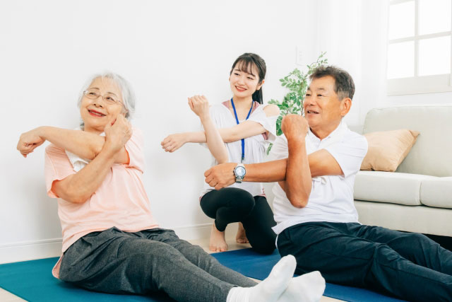 画面越しに先生と一緒に体を動かしながら、無理なくリフレッシュ。